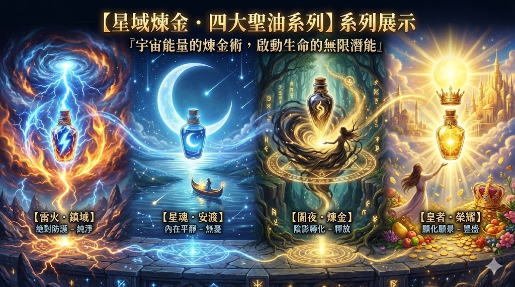 我們在此,為您封存了來自星域的四股神聖意志。這不僅是香氣,更是精微能量的煉金術。當您開始閱讀這份文案,一場關於自我的探索與平衡之旅,已經悄然開啟。